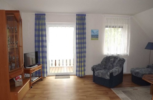 Our house is located in a quiet residential area just before Warnemünde. The beach is only 5 minutes by car. A separate entrance with its own parking space and balcony are available. An extra bed is possible by arrangement directly with the landlord. Please call your landlord. Arrival and departure please only by appointment. You pay cash locally.