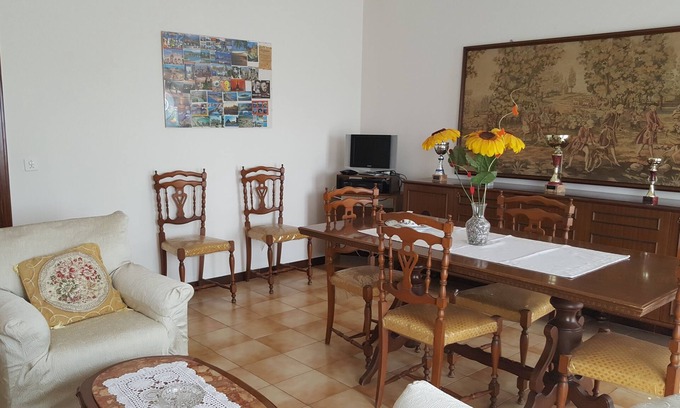 Large apartment located on the first floor of a single house in a quiet area but with all the comforts, 2 km from the exit of Giarre on the A18. It is located in a strategic position that is central between the Etna to 10 km and the sea to 3 km, with the beach of Fondachello and Riposto with the port of Etna, also the proximity to the highway makes it easier to travel to visit the beautiful coast eastern Sicily with cities such as Catania, Acireale or the beautiful Taormina, a visit that can also be done along the SS114 that runs along the Ionian coast with its striking views. For a quiet holiday both summer and winter, for the sea the mountains or the baroque cities. The apartment has a large kitchen, 2 double bedrooms, 1 single that can become double, a large living room-dining room with sofa bed, the size of the rooms makes you can get to accommodate 8- 9 people. For those who want there is the possibility of a parking space inside the garage located on the ground floor of the house.