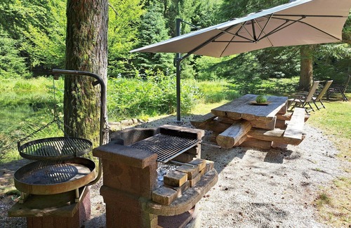 A true paradise for nature lovers! Your apartment is located on the ground floor of a residential building consisting of three holiday apartments, which, along with the house of the German owners, is situated on a 40,000 square meter natural site. Enjoy crystal-clear water, a unique flora and fauna, and at night, the impressive starry sky. Far from the stress of everyday life and without TV, you can go fishing, fly-fishing, mushroom picking, mountain biking, or leisurely cycling and hiking. Evenings are often spent here socially with barbecues, often with self-caught trout. However, guests can also enjoy spending the evening in peace and listening to the sounds of nature. If your dogs are "socially compatible," they will enjoy having fun with the owners' two dogs on this huge playground. Nature always has the final say here. Incidentally, the electricity in your holiday apartment is generated by the power of the stream. By the way, the electricity in your holiday apartment is generated by the power of the stream. The region offers a wide range of sporting activities: climbing (at Falkenfels), swimming in Lake Walscheid, 400 km of marked hiking trails, and 100 km of designated cycling paths. Beautiful cities such as Saverne, Strasbourg, and Colmar are also worth a visit.