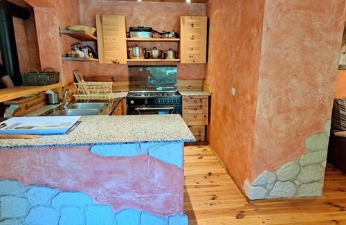 Layout: On the 1st floor: (open kitchen(stove(gas), oven, fridge(+ freezer)), Living/diningroom(double sofa bed(140 x 190 cm), fireplace, stereo unit), bedroom(double bed(140 x 200 cm)), bedroom(single bed(90 x 200 cm), double bed(140 x 200 cm)), bathroom(shower), toilet) grill, terrace, garden(shared with the the owner and other guests), garden furniture, sun loungers, parking, pond