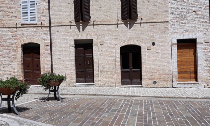 furnished apartment with living room and kitchenette with double sofa bed, bedroom with double bed and wardrobe, bathroom with shower, basement with exit to the back. Autonomous heating. Enchanting place located in the hills of the Val d'Aso, a stone's throw from Fermo, near the mountain and the sea of Porto S. Giorgio. Surrounded by enchanting villages in the richness of the hilly landscape