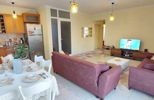 Our apartment is ideally located just 1 km from the center of Fethiye, 5 km from Çalış Beach, 12 km from Ölüdeniz, and 8 km from the historic village of Kayaköy. It's within walking distance to local markets (Migros, Bim, Şok, A101), the bus terminal, Erasta AVM, and the beautiful coastline. The apartment offers a spacious 80m² living area, featuring two bedrooms (1 double and 2 single beds), a comfortable sitting area, and modern amenities including a satellite receiver LED TV, Wi-Fi, and air conditioning in all rooms (3 units). The kitchen is fully equipped with a refrigerator, washing machine, dishwasher, stove, and microwave. The apartment also includes two balconies and two WC facilities, perfect for families. Situated in a safe and quiet neighborhood, it’s an ideal family retreat. On Tuesdays and Fridays, a local village market nearby offers fresh fruits and vegetables. The apartment is located on the first floor of a three-story building. Guests have full access to the entire apartment.