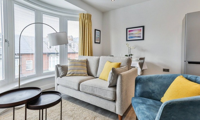 A stylish apartment tucked on the second floor, this bright and modern holiday home is ideal for couples or solo travellers seeking a peaceful coastal retreat. The space features a generously sized king bedroom with ample storage and a second wall-mounted TV for added comfort. A spacious living area includes a plush sofa, flat-screen TV, and board games for quiet evenings in. The property sleeps two and does not allow pets, offering a peaceful, allergen-free environment. Free open-air parking is included, and essentials like towels, linens, and heating come at no extra charge. Just a short stroll from the golden sands of Filey Beach, this apartment is perfectly positioned for a seaside break. Guests can explore local favourites such as Glen Gardens, Filey Golf Club, and the cliffside wonders of Flamborough Head. With the bustling town of Scarborough only 20 minutes away, the property offers easy access to museums, castles, and seasonal events. Shops, cafés, and restaurants are conveniently located on your doorstep for a relaxed, car-free holiday. A fully equipped kitchen offers modern convenience with an oven, hob, dishwasher, microwave, fridge-freezer, washer-dryer, and Nespresso machine. The luxurious bathroom includes a bath with overhead shower, a heated towel rail, and a backlit mirror for an upscale touch. The apartment is stair-access only, with handrails provided, and offers a comfortable, well-appointed base for a refined coastal stay.