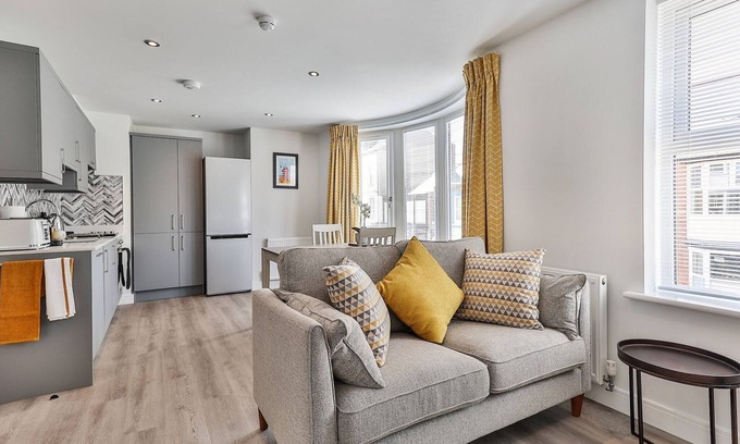 Situated in the heart of Filey, just a short stroll from the beach, this newly refurbished first-floor apartment is the perfect base for your seaside getaway. Whether you're exploring local shops, cafés, or enjoying the tranquil coastline, this pet-friendly apartment offers everything you need for a comfortable stay. The open-plan living area is bright and spacious, featuring comfy sofas, a wall-mounted flat-screen TV, and a selection of board games for family fun after a day at the beach. The well-equipped kitchen includes all modern amenities, such as a Nespresso machine, dishwasher, microwave, oven, and more to ensure that you feel at home. The master bedroom boasts a king-size bed, ample storage, and an en-suite shower room, while the second bedroom offers two single beds, perfect for children or friends. The main family bathroom includes a luxurious bath with a shower over, heated towel rail, and a back-lit mirror to enhance your stay. Step outside to explore the coastal charm of Filey, where the beach is just 0.5 km away. Glen Gardens, adventure golf, and the Flamborough Headland Heritage Coast are all nearby, perfect for outdoor enthusiasts. Plus, Scarborough is only a 20-minute drive away for even more attractions. This apartment is ideal for families, couples, or small groups looking for a relaxing escape with the convenience of being close to the beach and local attractions, with free allocated parking and pet-friendly accommodations.