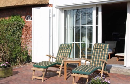 Our thatched country house from 1851 is located in the far north, in the middle of the fields and meadows. The large property is located close to nature and offers many beautiful places for humans and animals. The kitchen, with a ceiling height of only 1.80 m, kept its old charm and is still modern. On the ground floor there is a bedroom with a double bed and direct access to one of the two bathrooms, the living room with fireplace and satellite TV. A small sauna invites you to relax. A fitness room with kettler devices is available for all sporting. In the DG (low ceiling height) there is a single and a romantic double room. We are there for you for 365 days. You can find more accommodations from us at: www.urlaubvorsylt.de