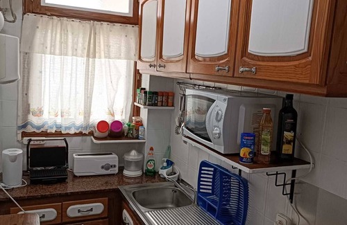It is fully equipped. We have; Combo fridge, Kitchen, Oven, Microwave oven, Coffee maker and Water Heater, complete cutlery with a variety of knives and small kitchen utensils, such as potato peeler, apple peeler, tea-making utensils, garlic chopper, etc.