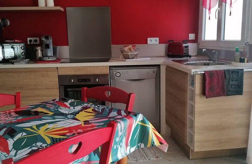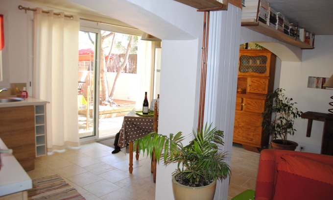 Hello. Character apartment located 300 m from the beaches and 8 min walk from the town center and the port. On the ground floor of the villa with terrace and barbecue. It has all the comforts: washing machine, dishwasher, wifi, microwave. A parking space available inside the property. Its surface is 80 m2, bedroom of 13 m2 with separate wc. Living room fully equipped kitchen (everything you need to cook).