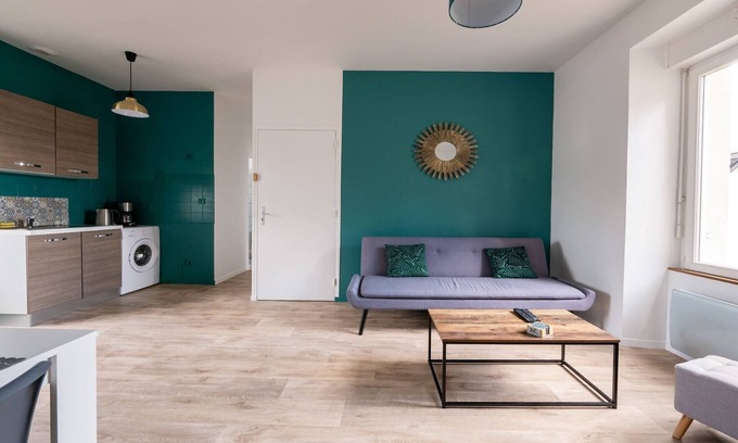 Enjoy a refined urban escape in this beautifully designed 3-room apartment, ideally located just steps from the heart of Le Mans. With its warm ambiance, thoughtful layout, and modern amenities, this space is perfect for families, friends, or business travelers seeking both comfort and convenience. The apartment features two stylish double bedrooms with curated decor, a sleek bathroom with a walk-in shower, and a versatile living area with a dining table that doubles as a workspace. A fully equipped kitchen—complete with stovetop, oven, microwave, and all essential utensils—makes it easy to prepare meals at home. A single sofa bed in the living room offers additional sleeping space, and all linens and towels are provided for your comfort. Set in a quiet neighborhood with quick access to shops, restaurants, and public transport, this apartment offers the best of both tranquility and city life. Guests benefit from 24/7 concierge support and a range of optional premium services, including breakfast delivery, catering, private drivers, and more. With thoughtful details, a peaceful atmosphere, and a central location, this is your ideal home base for exploring Le Mans or simply relaxing in style.