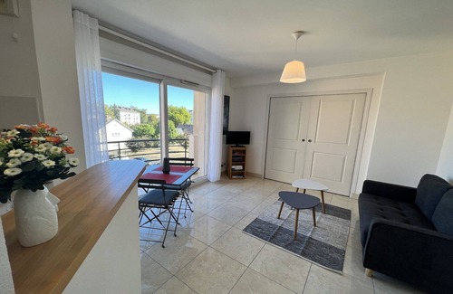 Enjoy a peaceful and practical stay in this bright, elevated apartment just minutes from the Sarthe and close to public transport for easy access to the city center. Perfect for solo travelers or couples, this modern space offers comfort, convenience, and a touch of charm—ideal for both business and leisure stays. The apartment features a cozy double bedroom, a sunlit living room with panoramic views, and a fully equipped kitchen with a dining area for relaxed meals. Step outside to enjoy a private outdoor space, perfect for soaking up the sun. With private parking included, you’ll have peace of mind during your stay. Located in a quiet neighborhood with quick access to shops, restaurants, and transit, this apartment is a great base for exploring Le Mans. Guests benefit from 24/7 concierge support and optional premium services like breakfast delivery, catering, private drivers, and more. Whether you're here for a short getaway or a longer stay, this welcoming apartment offers everything you need for a comfortable and memorable visit.