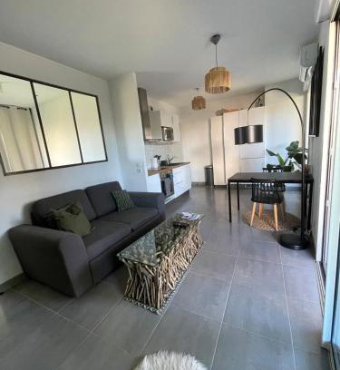 Apartment in Montpellier offers accommodations in Montpellier, 1.2 miles from Odysseum Shopping Center and a 18-minute walk from Montpellier Town Hall. This property offers access to a balcony, free private parking, and free Wifi. Fabre Museum is 2.1 miles away and Place de la Comédie is 2.4 miles from the apartment. Featuring a terrace and garden views, the apartment includes 1 bedroom, a living room, satellite flat-screen TV, an equipped kitchen, and 1 bathroom with a shower. For added convenience, the property can provide towels and linens for a supplement. The accommodation is non-smoking. The Corum is 2.1 miles from the apartment, while Zenith Sud Montpellier is 2.1 miles from the property. Montpellier - Mediterranee Airport is 4.3 miles away.