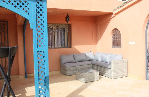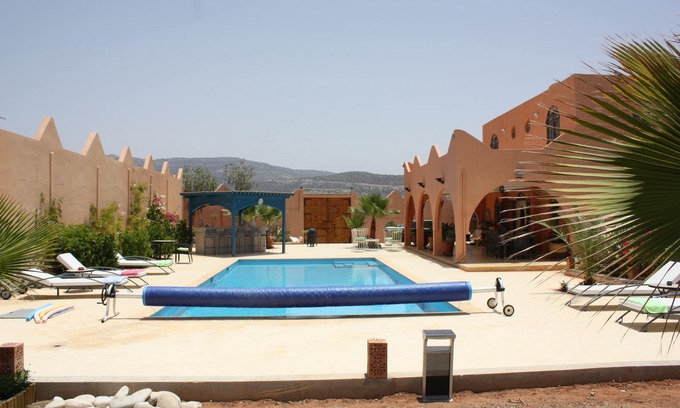 I rent in my property a magnificent apartment of 3 rooms, 55m². New construction. Integrated kitchen, living room, 2 bedrooms with their own bathroom, terrace of 65m², pergola 13m² swimming pool of 12msur5m. not overlooked. beautiful environment very very quiet, ideal for rest, walking mountain biking ect. Located in ALMA, a small Berber village 16 km from Agadir, 10 km from the beaches. At the entrance to the typical "Vallée duparadis" on the honey route. Ideal for 4 people