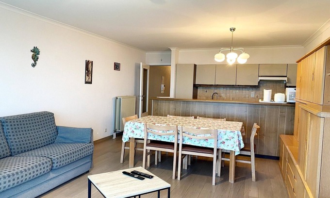 This charming one-bedroom apartment on the sea wall offers a perfect blend of comfort, convenience, and stunning coastal views. Just steps from the sandy shores, it provides a peaceful retreat for those seeking relaxation by the sea. Small pets are welcome, ensuring a delightful stay for all guests. Nieuwpoort is a charming coastal town, known for its picturesque beaches, historical landmarks, and vibrant atmosphere. Whether you're looking to soak up the sun, take a refreshing swim in the North Sea, or enjoy a leisurely walk along the coastline, Nieuwpoort Beach provides the perfect backdrop for relaxation and recreation, located within walking distance. You can also Explore the bustling marina, where colorful sailboats and yachts bob gently in the harbor. Enjoy a meal at one of the waterfront restaurants or simply soak in the maritime atmosphere. Explore the scenic countryside surrounding Nieuwpoort on foot or by bike, following a network of well-marked trails that wind through picturesque villages, lush farmland, and peaceful nature reserves. Enjoy breathtaking views of the azure sea and golden sands from your living space, creating the perfect setting for unforgettable moments. Relax with your favorite shows on Wi-Fi-enabled TV or cook with ease in the fully equipped kitchen. Cozy bedrooms ensure a restful night’s sleep, while secure on-site garage parking offers peace of mind. With a convenient lift for easy access, this apartment provides the ideal blend of comfort, convenience, and stunning coastal scenery.