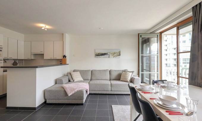 This modern two-bedroom apartment offers a stylish and comfortable stay in the heart of Oostduinkerke. Designed for up to four guests, it features a cozy living space with a welcoming atmosphere. The sleeping arrangements include a double bed and a unique four-person bunk bed, making it ideal for families or small groups. A private terrace or balcony provides a lovely outdoor space to relax. The apartment is completely smoke-free and does not allow pets. Entertainment options include a flat-screen TV, digital television, and Google Chromecast, while electric heating ensures a pleasant stay in any season. Located in the bustling center, this apartment offers easy access to a variety of shops, restaurants, and cafés. Enjoy fresh seafood at local eateries or grab a coffee at one of the charming cafés nearby. The vibrant markets offer a taste of regional delicacies, while boutique stores provide a unique shopping experience. For outdoor lovers, scenic walking trails and cycling paths are just moments away, making it easy to explore the coastal beauty of Oostduinkerke. Designed with convenience in mind, the apartment features a fully equipped kitchen with a dishwasher, microwave, combi microwave, fridge with freezer compartment, and both a coffee maker and a Senseo machine. The modern bathroom includes a bath with a shower screen, sink, and toilet. Situated on the second floor, the apartment is easily accessible and provides a welcoming retreat in a prime location.