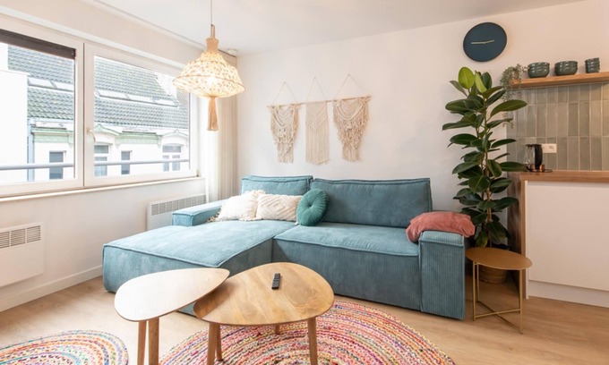 This fully renovated, modern and comfortable one-bedroom apartment is perfect for accommodating up to 2 guests. Located on the 4th floor, this apartment features a cosy bedroom with a double bed and duvet for two guests. The living room includes two coffee tables and a digital TV for relaxing, while the apartment is non-smoking and pet-free, ensuring a clean and comfortable environment. It offers a spacious lift that can accommodate up to 4 guests. With sunny afternoons, the apartment offers a pleasant atmosphere for guests to enjoy. The building offers shared bicycle parking, making it convenient for those who prefer to cycle during their stay. Situated in the heart of Ostend, the apartment is ideally located just a few metres from the beach and major attractions such as Visserskaai and Casino Kursaal. Guests can easily explore the vibrant city, with local shops, restaurants and leisure activities within easy walking distance. Public transport options are close by, making it easy to access the wider area, while the beach is just a short stroll away. The apartment features a well-equipped open kitchen, with modern appliances such as a combi oven, induction hob, kettle, blender, fridge-freezer, dishwasher and Dolce Gusto coffee machine. The bathroom includes a bathtub with shower, toilet and single washbasin, as well as a hairdryer for added convenience. The apartment is also equipped with a vacuum cleaner and is carpet-free for easy maintenance. These amenities are designed to ensure that guests enjoy a comfortable and hassle-free stay.