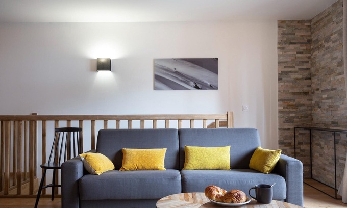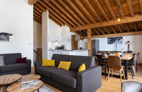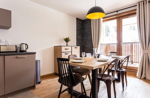 This charming apartment offers a cozy yet spacious stay for up to 12 guests, perfect for families or large groups. Featuring 2 bedrooms and 1 bathroom, the apartment provides ample space for relaxation after a day on the slopes. It is equipped with essential amenities to ensure a comfortable stay, although it does not include wifi or a private pool. The property also allows guests to experience the beauty of the mountains in a tranquil setting. Nestled in Plagne 1800, this apartment offers immediate access to the renowned Paradiski ski area, with a variety of slopes suitable for all skill levels. The surrounding village is known for its peaceful atmosphere, making it an ideal spot for those seeking a quiet retreat. Ski-in/ski-out access allows you to easily hit the slopes, while nearby bars and restaurants provide après-ski options for unwinding with friends and family. The location also grants convenient access to the larger Paradiski network. The apartment features a fully equipped kitchen for self-catering, allowing guests to prepare meals at their convenience. Additional amenities include comfortable seating areas in the living room and spacious storage for skiing equipment. Whether you're cooking a family meal or relaxing after a long day, this apartment offers a cozy base to enjoy the best of La Plagne.