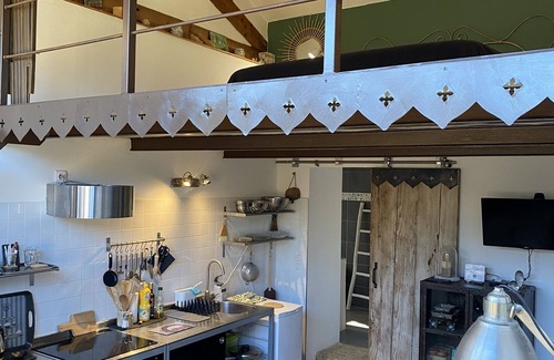 We opted for the industrial style and renovated with beautiful wrought iron materials, exposed stones and picture window like artist's studio. reversible climate control. we speak english, italian and spanish