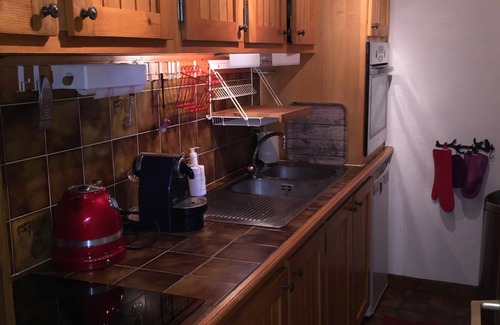 -kitchenette equipped with electric hob, oven, microwave, dishwasher, refrigerator, fondue, raclette mixer etc ...