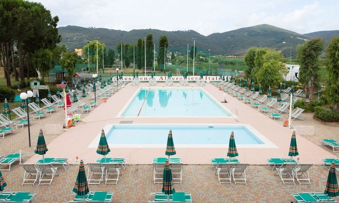 In the midst of lush vegetation, on the edge of the Tuscan Alps and close to the Ligurian Sea. The residence is surrounded by an approximately 7,000 square meter park with poplar and eucalyptus trees and offers a pool with a separate children's pool, a tennis court and a soccer field, ideal for families with children. The apartments are bright and friendly and have free WiFi and satellite TV as well as a furnished balcony.