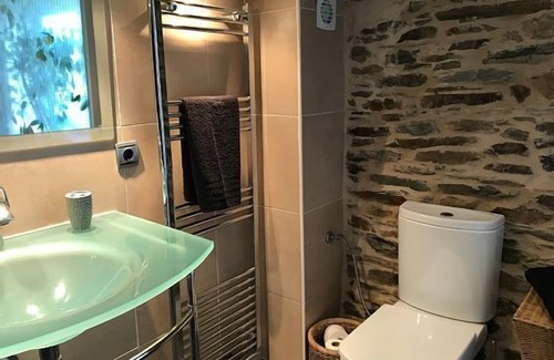 Independent apartment in rural house with private garden. It consists of a double bedroom with an extra bed for a child <6 years and a full bathroom en suite, living room with fireplace and kitchenette (small!) equipped with utensils, microwave, toaster and coffee maker. Includes terrace and garden both for exclusive use. Parking at the entrance for 2 cars. We accept certain pets (to consult with the property).