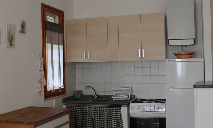Apartment, recently renovated and furnished, with two separate bedrooms with double bed in one and a double bed, bathroom (with shower), living room with sofa bed (for 5th and possibly 6th bed). It is located on the mezzanine floor of a building of 4 apartments in a private area with private park, ideal for families with small children, 150 meters from the free beach of Cervia Tagliata and has 2 balconies and courtyard for parking.