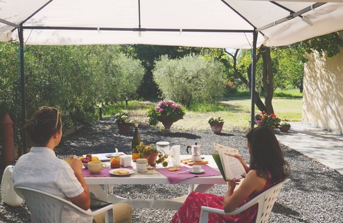 In the quiet of the Tuscan countryside, an old building used as a vegetable store, has been restored and transformed into an apartment. The apartment has a kitchen with a living room and a sofa bed, a bathroom and two bedrooms, one equipped with a double bed, the other with a queen-size bed. Housing comfort levels are achieved through special measures implemented with the renovation aimed at saving energy in the building. The ventilated roof, the outer coat and quality fixtures prevent heat loss and guarantee cool environments in summer and warm in winter. The photovoltaic and solar panels, positioned on the south side of the building, provide the necessary electricity and hot water.