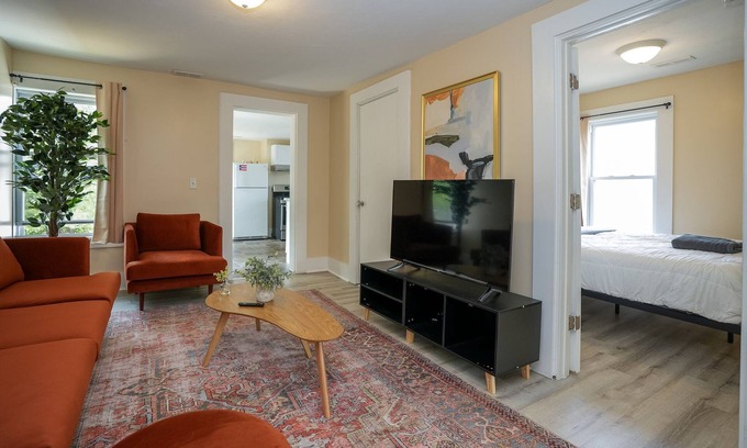 Located in the heart of town, very spacious and stylish, you have the entire apartment to yourself. It includes all appliances, a full kitchen, and a washer and dryer. This is a great spot for both short and long term stays. This unit does have a lot of stairs, so just be aware when booking. Pet friendly!