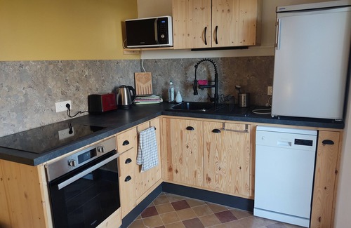 The kitchenette is equipped with an oven, a stovetop, and a refrigerator, as well as a coffee maker, an electric kettle, and a lobster pot. Bathroom amenities include a hair dryer, towels, and toilet paper. And you can even travel light because you'll have access to laundry facilities. Other amenities include bed sheets, a desk, heating, and a dining table.