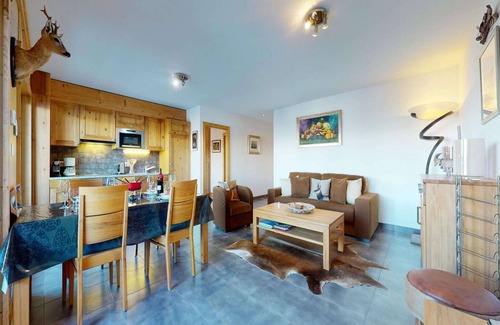 This modern apartment offers a comfortable stay for up to 4 guests, featuring a spacious living room equipped with a sofa bed, a cable flat-screen TV, and a DVD player. The accommodation includes one bedroom with two single beds, and a balcony that provides stunning views of the valley. While pets are not permitted, guests will appreciate the convenience of an indoor parking space and access to a sauna. The ski-in/ski-out setup enhances the experience for winter sports enthusiasts, making it easy to hit the slopes directly from the residence. Located in Veysonnaz, the residence is ideally situated just 400 meters from the nearest cable car and 1.3 kilometers from local shops and leisure activities. The tranquil environment is surrounded by nature, offering numerous walking trails for outdoor exploration. Its proximity to the ski slopes makes it perfect for skiing and snowboarding, providing a seamless experience for those looking to enjoy winter sports. The open kitchen is well-equipped with essential appliances, including a fridge, oven, microwave, and dishwasher, facilitating easy meal preparation. Additional amenities include a laundry facility and a ski room, which enhance the practicality of the apartment. This thoughtfully designed space combines comfort and functionality, making it an excellent choice for couples or small families seeking a memorable stay in the Swiss Alps.