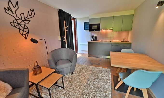 Modern Comfort in a Lakeside Setting Welcome to your cozy and newly renovated apartment in the heart of Vielsalm’s Les Doyards Holiday Park. This charming hideaway, ideal for couples or solo travelers (plus a pet!), blends modern furnishings with a nostalgic touch—only the original flooring whispers of the past. Enjoy a bright and airy living space with a flat-screen TV, a comfy open-layout bedroom with twin box-spring beds, and a clean bathroom with a walk-in shower. Explore the Outdoors—With Your Pet! Step out onto your private balcony and soak up southern or western sun while your furry friend relaxes at your side. Just minutes away, stroll around the tranquil lake or explore scenic trails through the Ardennes woodlands. Nearby, the Val de Wanne area welcomes dogs with open paws, and Vielsalm's weekly market and parks are perfect for socializing and soaking in the local vibe—tail wags guaranteed! Local Dining & Belgian Charm Within a 5-minute walk, discover the quaint streets of Vielsalm where cafés, patisseries, and restaurants invite you to sample regional flavors. Grab a warm croissant for breakfast, sip a local Trappist beer at a pet-friendly brasserie, or indulge in classic Walloon dishes like boulets à la Liégeoise. Whether you’re unwinding after a day of hiking or enjoying a laid-back evening, your stay promises comfort, charm, and plenty of paw-sitive memories.