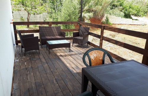 The villa features three well-appointed bedrooms and two modern bathrooms, making it comfortable for you and your guests. The expansive living room and kitchen area flow seamlessly into a large panoramic veranda overlooking the sea, perfect for hosting pre-wedding brunches or sunset cocktails. Additional amenities include air conditioning in the sleeping areas, a double sofa bed in the living room, access to shared outdoor spaces, a garden with children's games, and shaded parking. For families traveling with little ones, a cot can be provided at no extra charge, ensuring a stress-free stay.