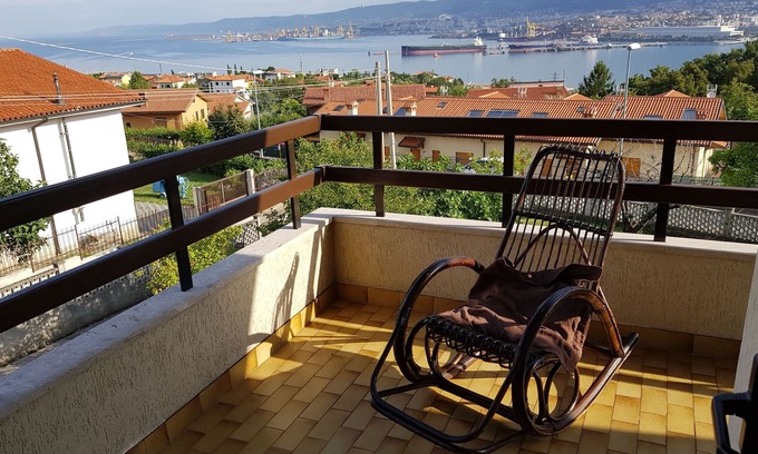 Apartment in a semi-detached villa, panoramic sea view terrace, suitable for families with children, free wi-fi, TV, garden, private parking, eventual public bus service at the entrance, not far from the center of Muggia with land and sea connections with Trieste and various places in Slovenian and Croatian Istria. Animals are not allowed.