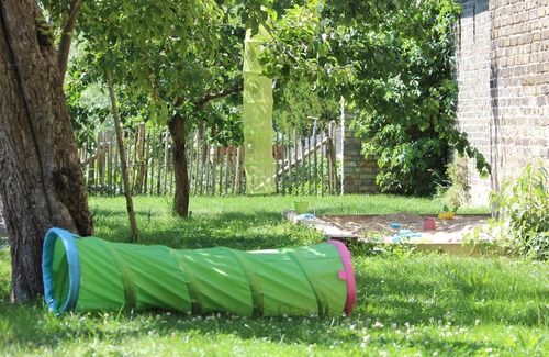 Los niños disponen de mucho espacio para correr y jugar en el jardín, así toda la familia puede explorar la ciudad de Berlín durante el día y por la noche cada uno puede descansar a su manera.