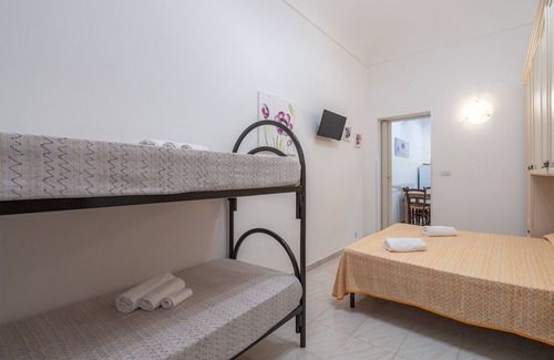 The holiday apartment "Kakyparis" is located in Cassibile and is perfect for an unforgettable holiday with your loved ones. This property consists of a living area with a fully-equipped kitchen, 1 bedroom with a queen-size bed and bunk beds for 2 people, and 1 bathroom and can therefore accommodate 4 people. Additional amenities include high-speed Wi-Fi (suitable for video calls), a TV, air conditioning as well as a washing machine. A camping cot can be provided.