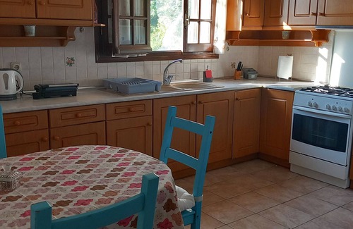 Boasting a beautiful view of the Ionian Sea, the holiday apartment "Kantaros House" is located on Corfu. The 119 m² property consists of a living room with a sofa bed for 2 people, a fully-equipped kitchen, 3 bedrooms and 1 bathroom and can therefore accommodate 5 people. Additional amenities include Wi-Fi (suitable for video calls) with a dedicated workspace for home office, a TV, air conditioning, a fan, heating as well as a washing machine.