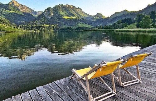 - Sunny chalet vacation apartment with a view of the Jaun valley in the west alps