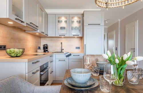 Located in Glücksburg (Ostsee), the holiday apartment Komfort-Appartement Strandperle offers guests a fantastic view of the Baltic Sea. The 57 m² property consists of a living room with a sofa bed for 2 people, a kitchen, 1 bedroom and 1 bathroom and can therefore accommodate 4 people. Additional amenities include Wi-Fi as well as a TV. Furthermore, a private sauna is available on the property. A baby cot and a high chair are also available. This vacation rental features a private terrace for relaxing evenings.