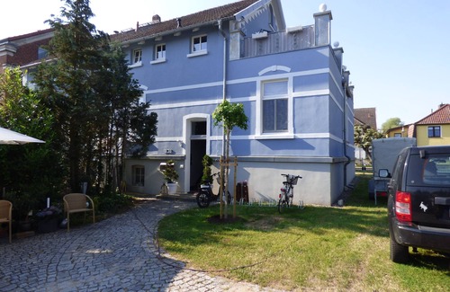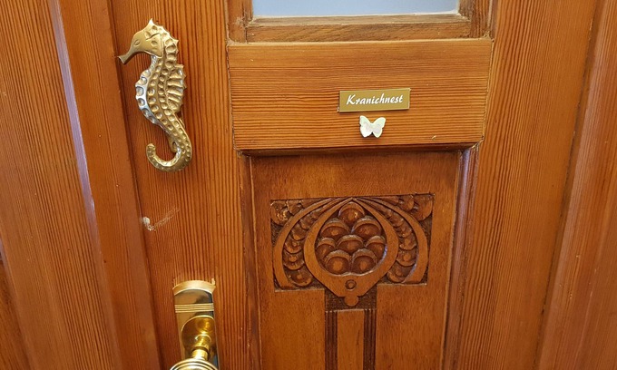 Our most beautiful holiday apartment. With direct access to the garden. The large open fireplace invites you to drink wine. The high rooms convey a feeling of stately character. The blue Berlin hallway with handcrafted stucco accompanies you into the modern kitchen.