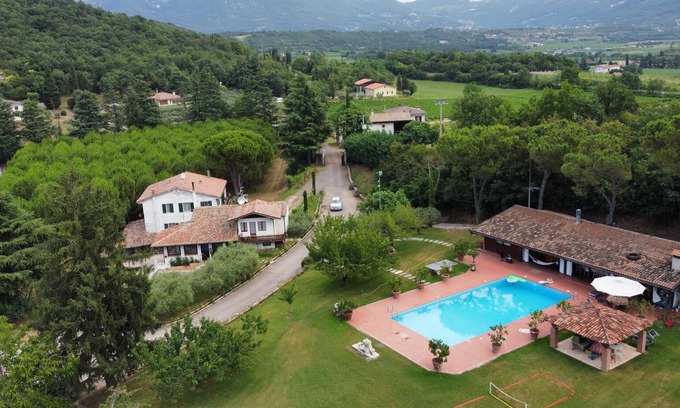 The holiday apartment Eco Farm La Cavallina Guest House is located in Affi and is the ideal accommodation for a relaxing getaway. The 2-storey property consists of a living room, a well-equipped kitchen, 4 bedrooms and 2 bathrooms and can therefore accommodate 8 people. Additional amenities include Wi-Fi, a smart TV with streaming services as well as children's books and toys. On top of that, a table tennis table and a pool table are also provided for your enjoyment. A baby cot and a high chair are also available. This accommodation does not offer: air conditioning. This vacation rental offers a private outdoor area with a pool, garden, barbecue, and outdoor shower.