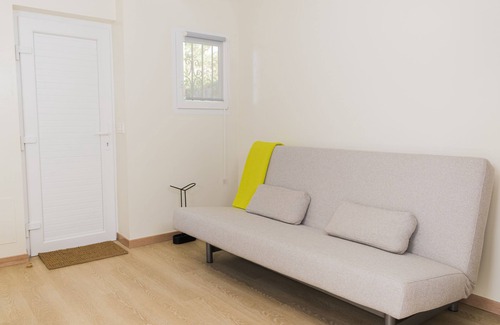 The accommodation has a living room with a sofa bed, a fully equipped kitchen and dining room (washing machine, microwave) and a private bathroom with a shower. The apartment has a terrace and garden.