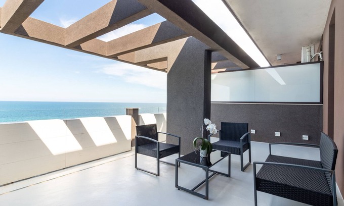 The feeling is that of staying on a boat, as it is an eighth-floor penthouse with a private sea-view terrace and with beach access 20 meters away.