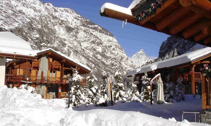 The four-room apartment is located within a tourist complex located between the Alps of Valle d'Aosta, a region surrounded by the four highest mountains in Italy: Mont Blanc, Cervinio, Monte Rosa and Gran Paradiso. The presence of the four mountains make the Valle d'Aosta a completely mountainous region, with a climate that varies from Alpine to continental.