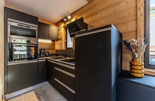 The lounge area includes a very comfortable 2-seater convertible sofa bed and a retractable flat-screen television. The kitchen area is fully equipped: toaster, kettle, filter coffee machine, microwave, dishwasher, etc. You will find everything you need to cook and enjoy your meals on the shepherd's table.