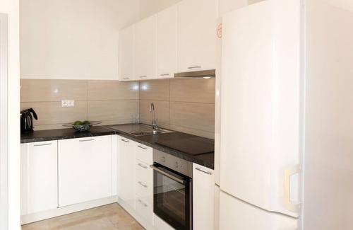 "Lada", 3-room apartment 75 m2 on 2nd floor. Living/dining room with 1 double sofabed (150 cm), TV (flat screen), air conditioning. Exit to the balcony. 1 room with 1 double bed. 1 room with 1 double bed (160 cm). Open kitchen (oven, dishwasher, 4 ceramic glass hob hotplates, toaster, kettle, freezer, electric coffee machine). Shower/WC, sep. WC. No heating option. Balcony. Balcony furniture. Marvellous view of the sea. Facilities: Internet (WiFi, free). Please note: private entrance.