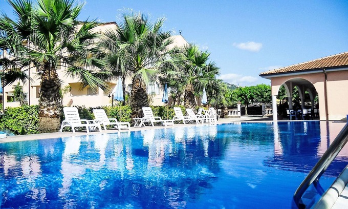 Marina di Ascea: Beautiful holiday development "Laura", surrounded by trees. In a busy, sunny position, 350 m from the sea, 350 m from the beach, located by a road. For shared use: garden (fenced) plants and flowers, swimming pool (15 x 6 m, seasonal availability: 15.May. - 15.Sep. pool opening hours: 09:00-21:00). Outdoor shower, garden furniture. In the complex: reception, bar, WiFi, sun terrace, washing machine (for shared use, extra). Linen change weekly (suppl. charge extra). Towel change weekly (suppl. charge extra). Room cleaning daily (included). Breakfast (included). Parking at the house. Shop, supermarket 150 m, bus stop 1 km, railway station "Ascea" 2 km, sandy beach 350 m. Tennis 400 m, minigolf 1 km, riding stable 600 m. Nearby attractions: Zono Archeologica Elea-Velia 300 m, Paestum 40 km, Amalfi Coast 90 km, Sorrentino Peninsula 140 km, Pompei 100 km, Napoli 140 km. Please note: the photograph shows a typical example. Additional accommodations can be booked.