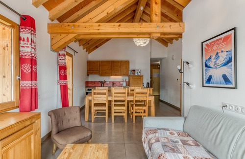 Modern chalet-style apartment in the centre of the family-friendly ski resort of Saint Jean d'Arves, 200 metres from the slopes of the Sybelles ski area. South-facing balcony and magnificent view of the Aiguilles d'Arves.