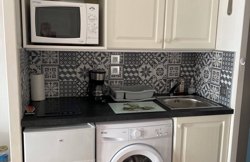 The kitchenette is equipped with a stovetop and a refrigerator, as well as a coffee maker, a microwave, and cookware. And you can even travel light because you'll have access to laundry facilities. Other amenities include a sofa bed, an ironing board, heating, and a dining table.