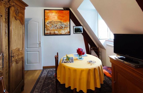 On the 1st floor (attic): - small kitchen (trio [4-burner ceramic hob, oven, dishwasher], single sink, fridge with freezer, microwave, washing machine), - small living room - living room (TV 50cm , DVD player, stereo, BZ sofa bed to accommodate 2 additional people on request), - 1 bedroom (1 double bed 140x190cm), - shower room, - separate toilet. Cot Located on the banks of the Seine (20 meters) with a breathtaking view where you can admire the passage of boats, along the tourist route of the Abbeys and fruits passing in front of the gîte. This apartment is located on the 1st floor of the owners' house (62m² on the ground and 32m² Loi Carrez) with independent entrance. You have the owners' enclosed garden of 3000m² with private space, large parking lot. Golf at 5km and Voie Verte at 1km. On the Route des Abbayes: Jumièges, St Wandrille... Animals welcome: 1 dog maximum (paying): very small dogs (example: yorkshire, pug) only. Rental charges not included in your rental: - heating, - electricity (payment for electricity after meter reading on arrival and departure beyond 8 kw/h per day, at cost price), - Household chores, - the tourist tax. Enclosed garden, Television, Electric heating, Baby bed, Linen provided, Internet connection, Private car park, Washing machine, Dishwasher, Linen hire, Cleaning fee, Terrace, Pets allowed, Pet deposit, Microwave, DVD player, Hi-Fi system, flat screen TV, garden furniture, barbecue, ping-pong table. Option to be paid on site: Package stay per animal: €5. Cleaning charge: €50. Unless stated, services such as cleaning, bed linen, towels etc. are not included in the price of this rental. If pets are allowed (information in the advertisement), charges may be applicable. Only equipment mentioned in this advertisement are present. Equipment not mentioned are not considered to be present.