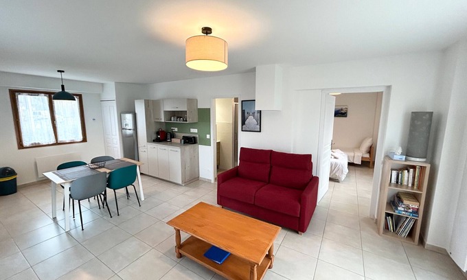 Our 45 m² apartment welcomes you in a warm and friendly atmosphere, with all the comfort you need for a pleasant stay.