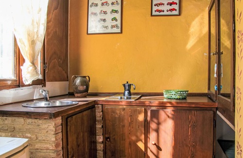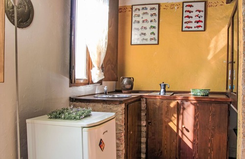 "Leda", 1-room apartment 31 m2, on the ground floor. Rustic furnishings: living/sleeping room with 1 double bed, dining table, kitchen corner, shower/bidet/WC and TV. Exit to the garden. Kitchenette (2 hot plates). Air-conditioning, forced-air heating. Upper floor: (steep stair) gallery with sloping ceilings with 1 double bed. Small garden. Terrace furniture. Facilities: Internet (WiFi, free). Parking at the house. Please note: fridge without freezer. Maximum 1 pet/ dog allowed. Private entrance. IT041044B5Y9YW5KOX