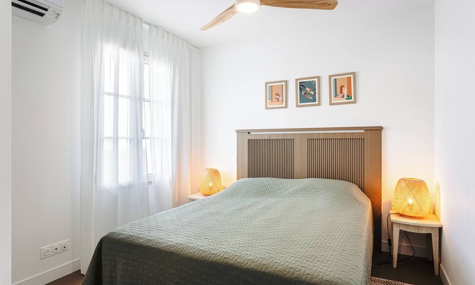 This 35 m² apartment for 3 people, located on the 1st floor, has a separate bedroom with a Queen-size bed and a bright living room with a sofa bed for one person, and offers all the amenities you need for your comfort. There's also a large, fully-equipped kitchenette (dishwasher, coffeemaker, induction hob, microwave, etc.) and a modern shower room with toilet.
